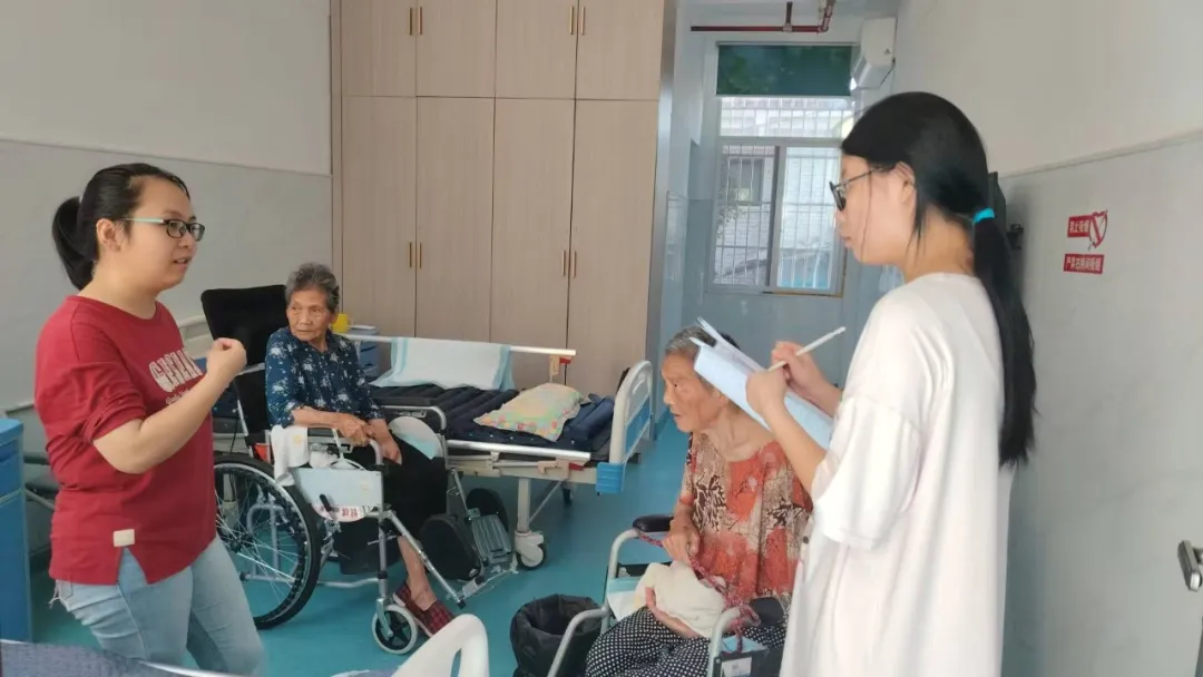 “失能老人照护前哨”队员王智慧在养老院调研服务