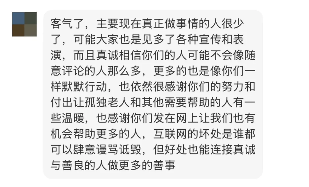 一位网友给“失能老人照护前哨”社交账号的留言