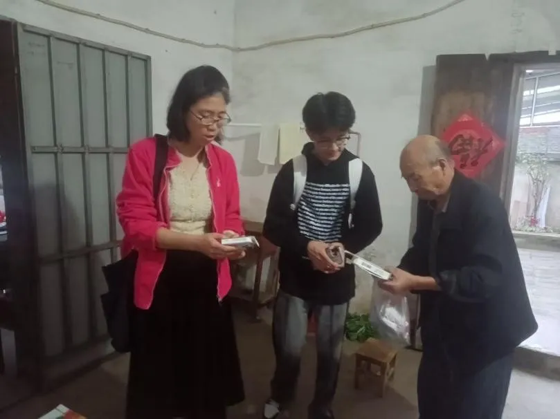 作者与指导老师一起下乡调研,为老人解读药物使用