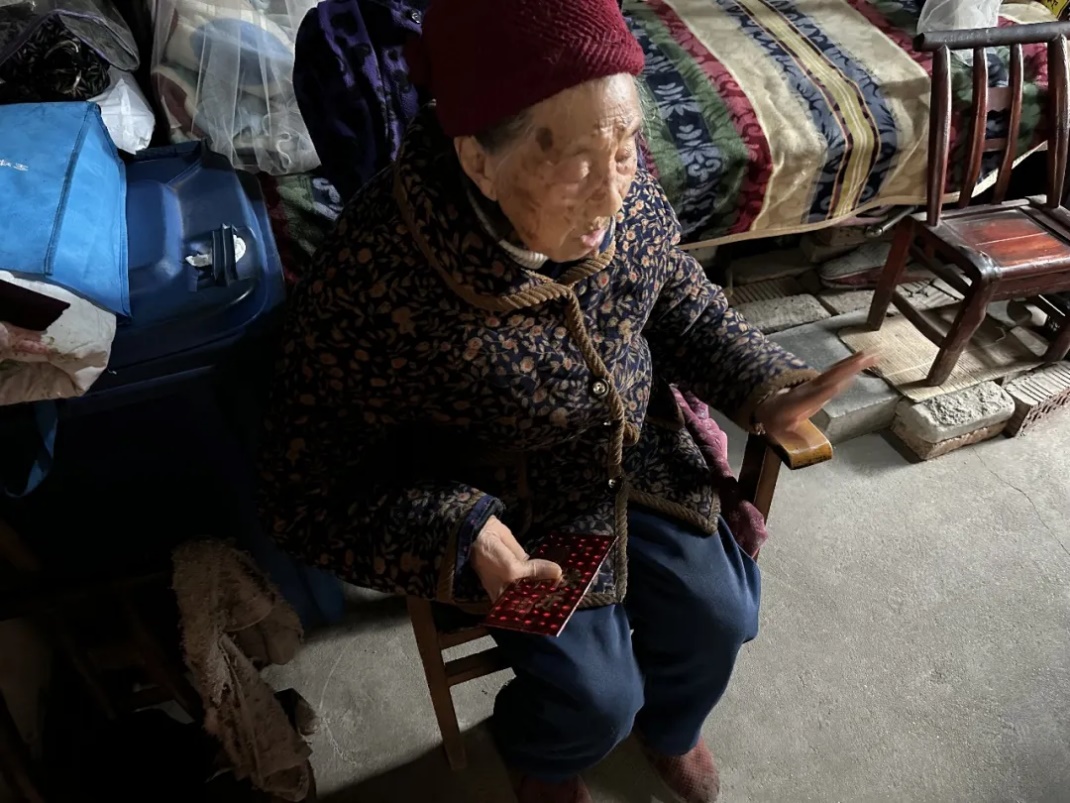 她一个人住在村里的老屋。老伴走了多年,唯一的女儿也嫁到了外地。尽管有高龄补贴、养老金,村里还为她特事特办申请了“五保”待遇,理论上她能入住养老院,但她拒绝了。女儿也曾想接她同住,但女儿自己年事渐高,且改嫁至外地后未有子女,唐奶奶不愿成为拖累。
