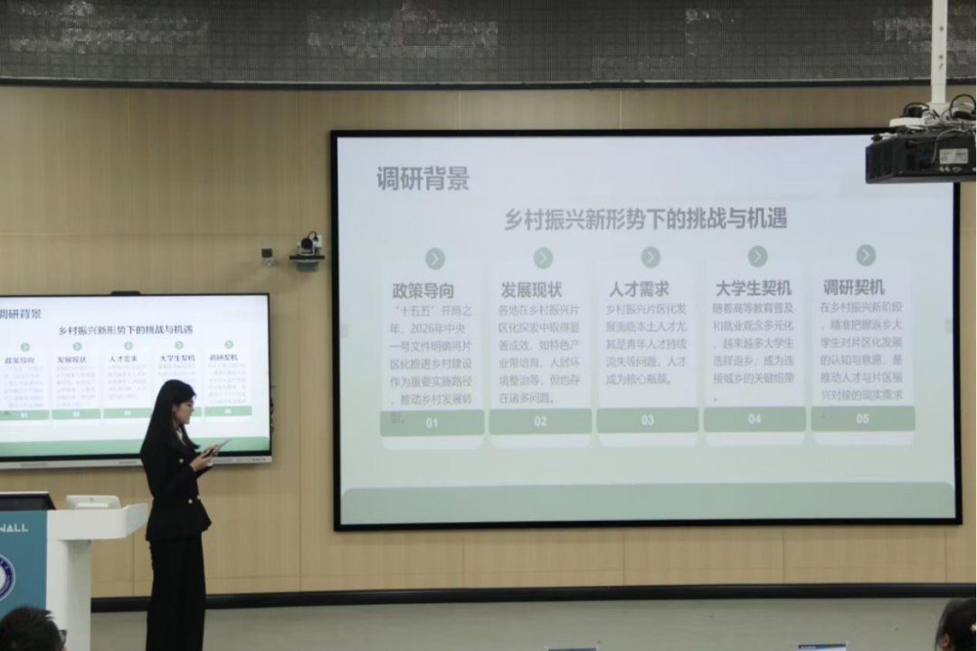 青马班寒假社会调研第五组的主题是“青年返乡践使命,片区振兴聚动能”。从青年潜力、认知短板、发展痛点、保障缺失、参与特征多方面展开调研,提出搭建多方联动的协同治理格局,建立精准化宣传与评估体系,助力乡村振兴。
